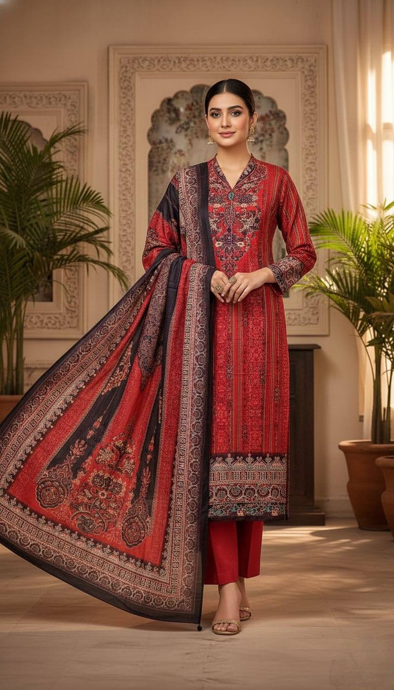 লাক্সারি কমফোর্ট! (Dulax) পাকিস্তানি সিগনেচার প্রিন্টের লোন থ্রি পিস কালেকশন!