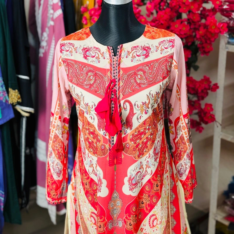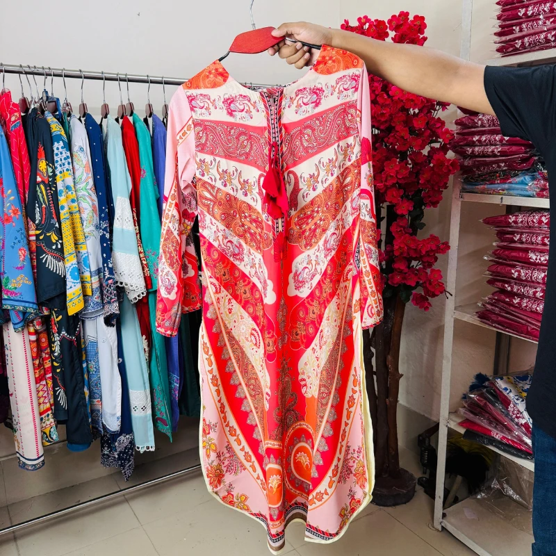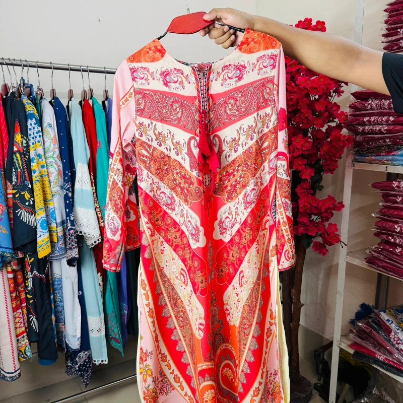 একদম প্রিমিয়াম ডিজিটাল প্রিন্টে তৈরি,Diamond জর্জেট ফ্যাব্রিকের দারুণ কমফোর্টেবল রেডি ওয়ান-পিস।